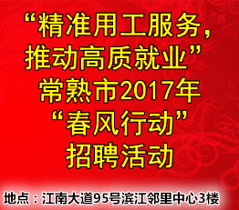 2月12日(周日)“精準(zhǔn)用工服務(wù),推動(dòng)高質(zhì)就業(yè)”常熟市2017年“春風(fēng)行動(dòng)”招聘活動(dòng)